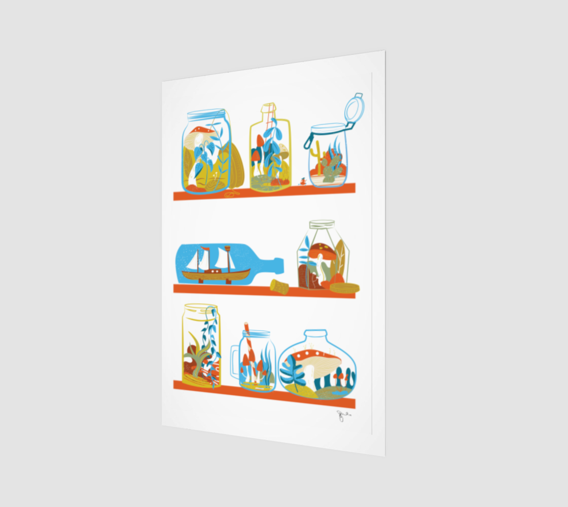 Illustrated worlds kept in jars during the long quiet; tiny ecosystems grown in isolation, carrying the moment we all lived in, and the slow, tentative opening that followed. First appeared in TOQUE Magazine.